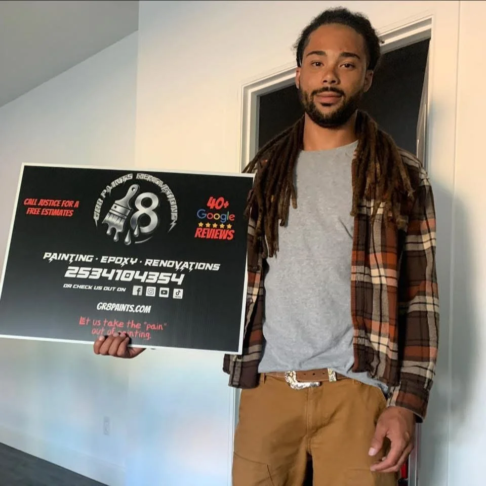 Hi, I’m justice the owner here at GR8 Paints Renovations. I opened the company back in 2020. I am 29 years old, born in Olympia Washington.